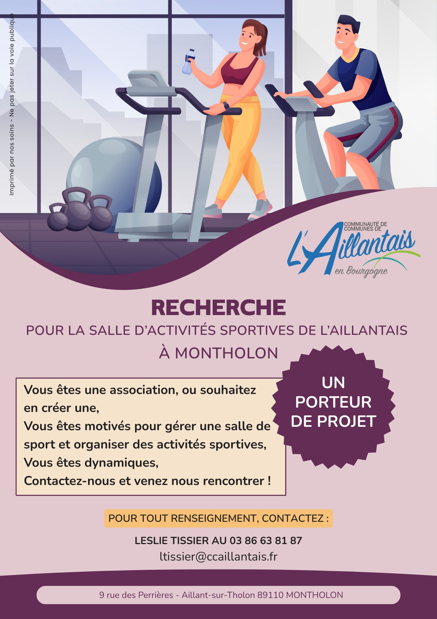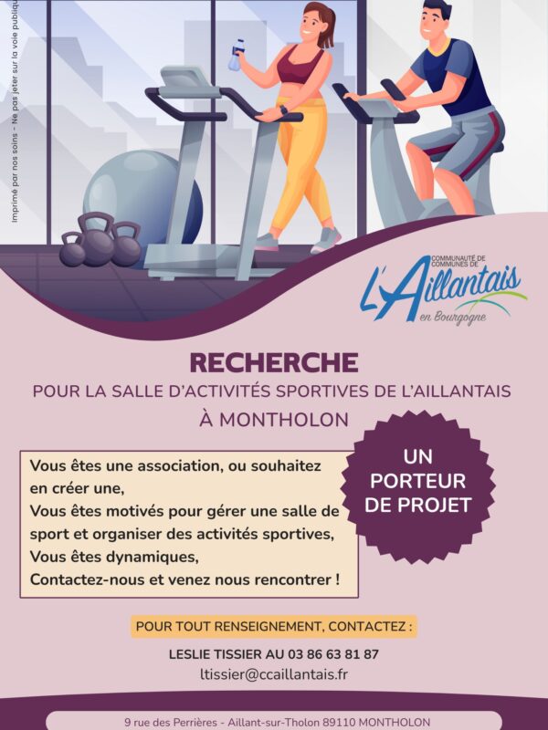 La CCAB recherche pour la salle d’activités sportives de l’Aillantais à Montholon un porteur de projet.